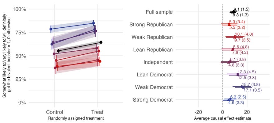 Information about contagiousness of COVID-19 increased everyone’s intentions to get vaccinated – Democrats, Republicans, and Independents – regardless of prior beliefs (Baxter-King et al. 2025)